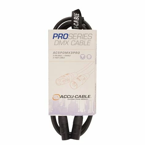 ADJ provides the Pro Series 3-foot DMX Cable with a 5-pin male to 5-pin female connection.