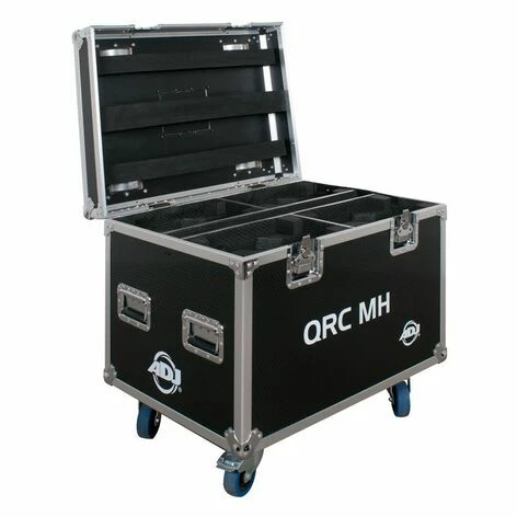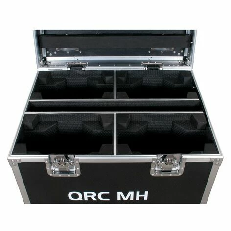 The QRC-MH is a sturdy wheeled flight case for transporting four of the ADJ Focus Spot 5Z, Focus Spot 4Z, Focus Spot 4Z Pearl, Focus Spot Three Z, Focus Spot Three Z Pearl, Focus Beam LED or Vizi Beam RX One. Four divided compartments protect the lighting fixtures and a separate central compartment is provided for cables, clamps and other accessories. The case has a top-loading design where fixtures are lowered in headfirst and hang from their base to ensure maximum protection.