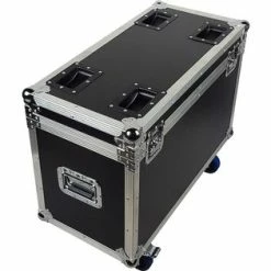 The Stiletto Glo Case Dual is constructed using 3/8” plywood covered with a durable ABS plastic exterior laminate and features tapered aluminum edging, steel ball corners, four steel spring loaded recessed handles with rubber hand grips, and is fitted with steel recessed butterfly latches. It sits on heavy-duty locking casters, and the case has steel recessed caster cups on the lid for case stacking.