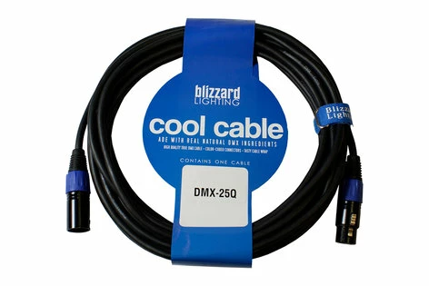 The DMX-25Q is a Cool Cableâ„¢ DMX cable from Blizzard Lighting that demonstrates superior performance in DMX applications along with exceptionally durable and flexible construction. Cool Cableâ„¢ DMX cables meet the USITT standards for DMX512 cable specifications with 120 ohm impedance, low capacitance, and feature a double (foil and braid) shield.