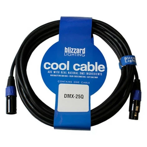 Blizzard Lighting’s DMX-5PIN-25Q is part of the Cool Cableâ„¢ DMX lighting control cable series. This 25′ 5-pin XLRM to XLRF DMX cable is ultra-flexible, abrasion-resistant and durable with 120 ohm impedance, low capacitance, and features both foil and braid shields. These high quality cables meet many standards including EIA-485 and USITT standards for DMX512 cable specifications.