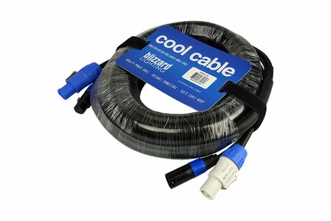 Blizzard Lighting’s DMXPC-25, a 25′ Cool Cablesâ„¢ powercon and DMX combo cable, can be used to link the power and data of any equipment with DMX and powercon input/output connections. The Cool Cablesâ„¢ powercon and DMX combo cables come in various lengths, with 3-pin or 5-pin XLR connectors so they can replace any set of individual power and DMX extensions with a single neatly wrapped cable making your lighting setup simpler and cleaner. This model, DMXPC-25, features heavy-duty 14AWG wire fitted with powercon compatible blue input to white output connectors on either end for power, plus its 120 ohm impedance, low capacitance with foil and braided double shield, 3-pin XLR male to female DMX cable.