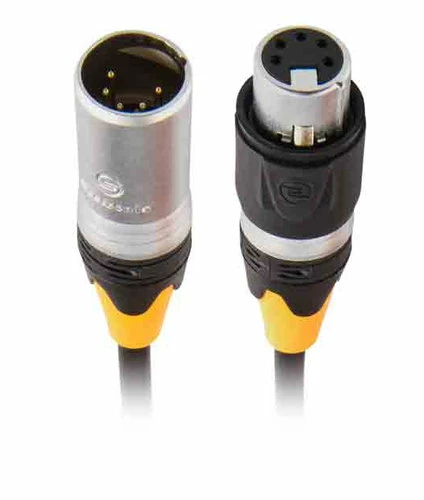 The Chauvet Professional IP65 Rated 5-Pin DMX Extension is a 25 ft DMX cable featuring a 5-pin XLR-M connector on one end and a 5-pin XLR-F connector on the other. This cable is made specifically for lighting and meets stringent standards of suitability and quality to provide safety, shielding and prevent transmission interference.