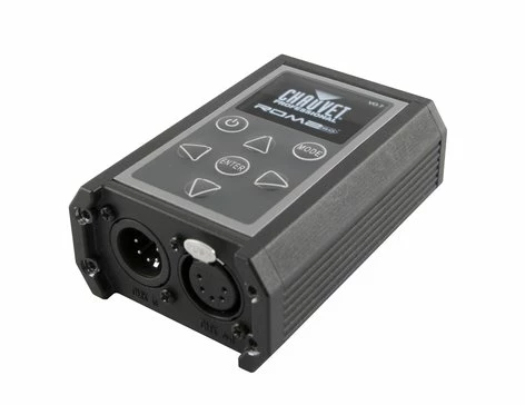 Chauvet Professional’s RDM2go is a multi-functional tool for working with fixtures over a DMX/RDM data line. This palm-sized controller performs a multitude of tasks including RDM functionality, DMX snapshot and test-scene record and playback, DMX input and output monitoring.