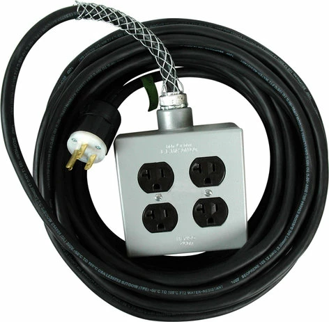 The TecNec SSPC-50 is a 50 ft. ultra-heavy duty 14/3 15-amp AC extension cord with a cast aluminum quad box that features a heavy duty Leviton 5266C 3-prong AC plug and 14/3 SJ heavy duty rubber coated cable.