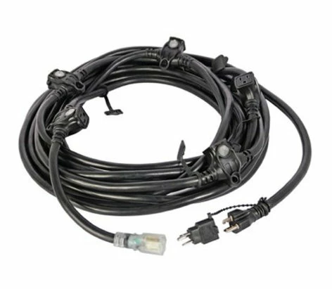 E-String; 12/3 STW, NEMA 5-20 Plug, (6) NEMA 5-15 receptacle; 50′, plugs spaced 10′ apart.