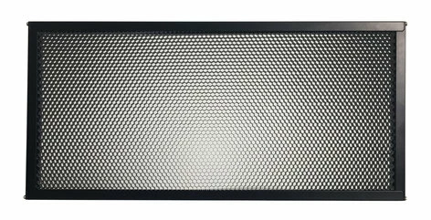 This Litepanels’ Honeycomb Grid (SKU# 900-3602) offers a convenient means of controling the LED light beam from the Gemini fixture. Constructed of an extruded powder-coated aluminum frame with aluminum honeycomb material. In practice the grids, which slide into the Gemini’s accessory rail system, function much like barndoors to control light spill.