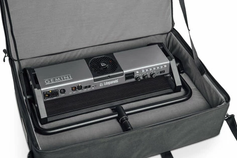 This Gemini Soft Carry Case from Litepanels has been made specifically to hold the Gemini 2×1 family of LED light panels securely. This soft carry case is made of ballistic material and offers padded protection to transport one Gemini 2×1 Soft panel with room to add a couple of accessories such as Bluetooth communication modules, Snapbag softbox and Anton/Bauer Battery plates. The case also features a handle and a an adjustable shoulder strap for easy handling.